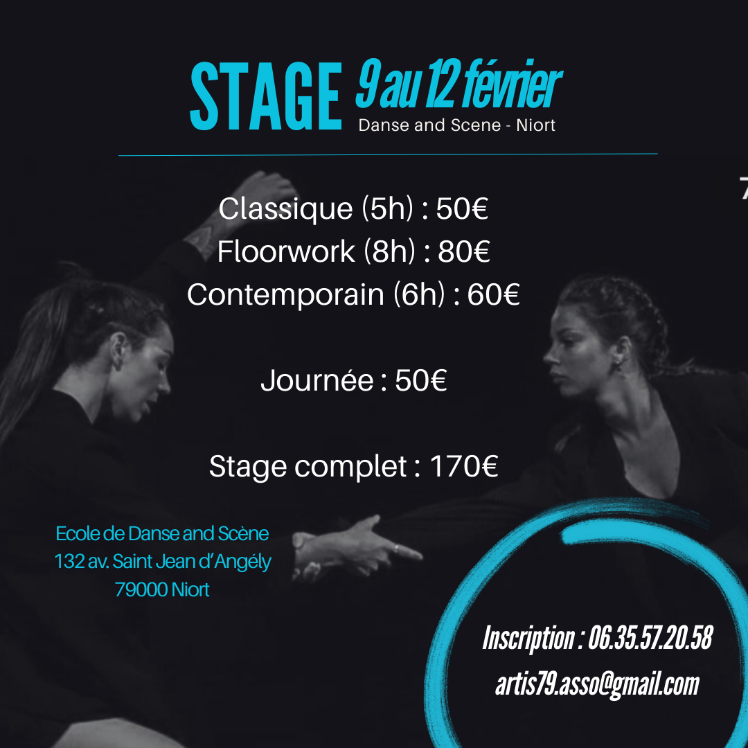 Stage pluridisciplinaire avec Valérie Serrano et Marion Fournier à l’école Danse And Scene, 132 avenue saint jean d’Angely à Niort.